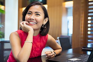 Portrait of an Asian businesswoman smiling at the camera in office