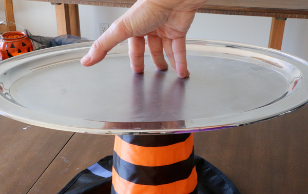 The top of the witch hat had to be snipped off so that the silver tray could be added.