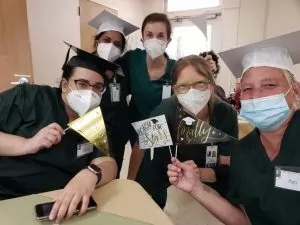 The virtual classroom was live and interactive and allowed the students to participate in the first half of training without leaving their homes or putting their families at risk. The Goodwill also continued to teach the skills and clinical portions of training in-person following social distancing guidelines, using proper PPE, and providing weekly COVID testing.