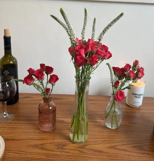 I set up a virtual video call with my besties and gave them the instructions — we were going to all go thrift a pretty vase at Goodwill, grab a bunch of flowers (depending on where you live, you might even have some in your backyard) and get together for a few hours over the phone as we put together our festive floral arrangements. I was so happy with how mine came out! They might not last forever, but the memory of spending quality time with my best friends certainly will.