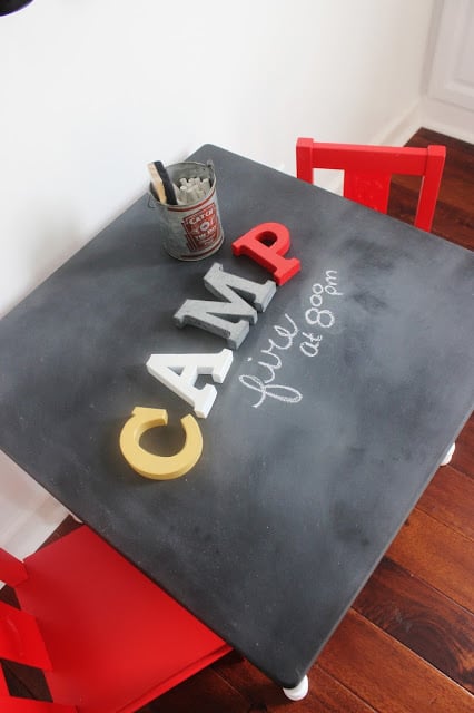 By now you probably already know that thrifting second-hand furniture is worlds cheaper than buying brand-new. That’s especially true when it comes to kids’ furniture! The worst part about paying full price for the furniture your kids will use is knowing that it will probably be drawn on, scratched, and stickered in no time. Why not start with furniture that is already conducive to your kids’ creativity? Jennifer crafted this truly inspiring playroom and shared it on her blog, Delightfully Noted. It includes a kids’ table that she scored at Goodwill for just $2 and transformed into a chalkboard to stay one step ahead of those inevitable doodles! Go ahead, little ones, draw on!