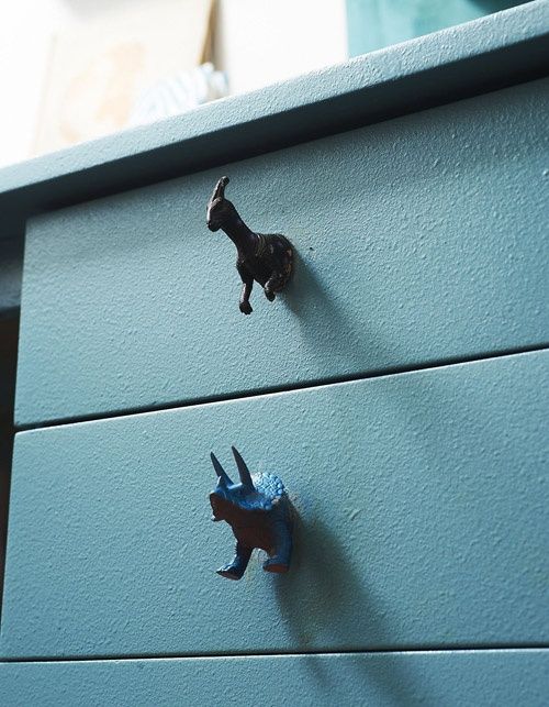 Who said everything in your kid’s room can’t be just as fun as the toys they request? I challenge you to turn the most boring object you can think of (a dresser, perhaps?) into something exciting for your bambinos! It really can be as simple as slapping a fresh coat of bright paint on a Goodwill bureau and swapping out the regular knobs for toys you grabbed on your way to the check out, too! I found the above project idea on Goodwill Industries of South Central Wisconsin, Inc. (Madison)’s pinboard of DIY Ideas and instantly loved its kid-friendly quirkiness.