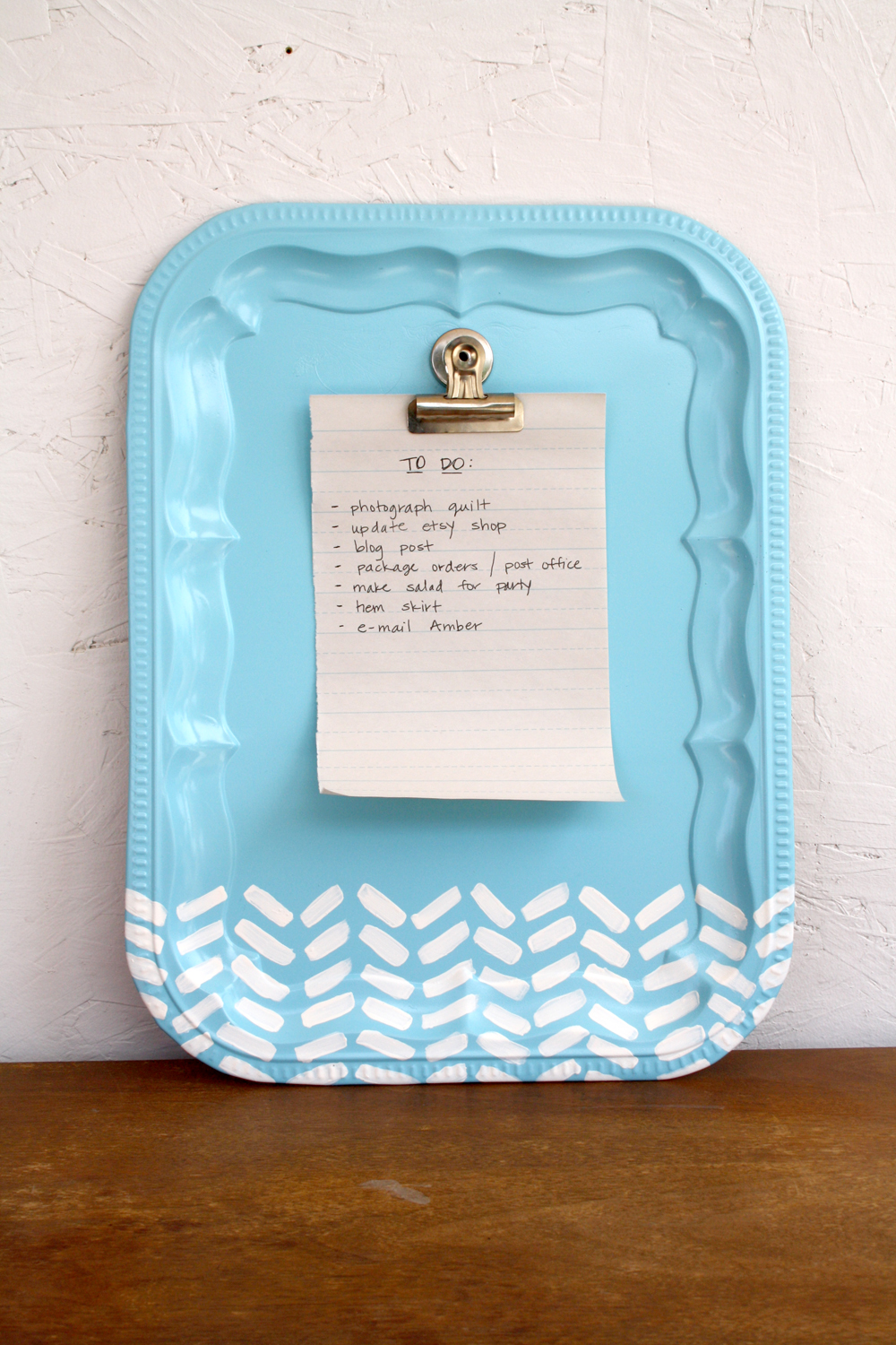 And, finally, a solution for the messy countertops in your kitchen area: Use a metal tray as a magnet board. Why have I never thought of this? If your fridge is already covered in photos and drawings, you may find that you could use a separate space for something like a to-do or grocery list. I know that paper scraps are always a problem in our house and thrifting a cute metal tray would fix that in a flash. Go ahead and paint your tray like this crafty blogger did, or check out Goodwill of the Olympics and Rainier Region (Tacoma)’s round up for other tray display ideas!
