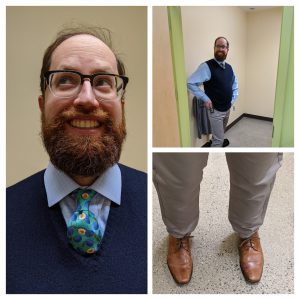 I’m lucky in a lot of ways, but one of them is the fact that my husband lets me buy nearly everything in his wardrobe from Goodwill. He’s basically been my Ken doll for the bulk of our relationship. Lucky him! So, I know good and well what he will and won’t wear, his current sizes and his favorite brands and colors. I was pretty stoked, though, going into date night, knowing that I had a perfect excuse to mix it up a bit and convince him to try some stuff on that’s VERY outside his comfort zone.