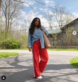 Get creative with your red, white and blue with an outfit that creates a subtle nod to the holiday weekend (and can be repurposed for the 4th of July). Goodwill can be full of patriotic prints and colors, and some locations have the racks color-coded so you can easily find what you’re looking for. Mixing and matching in unexpected ways like the Goodwill shopper above is a great way to bring a sporty side into the look.