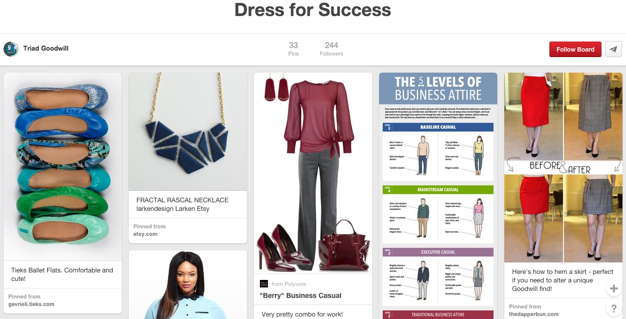 Your big job interview is looming on the horizon and you’re still staring blankly into the abyss that is your closet, waiting for the right outfit to jump out at you. It has to be professional, crisp, and still comfortable so you’re not sweating any more than you already will be as you make this scary step toward a different future. Don’t let this task overwhelm you. Check out this “Dress For Success” pinboard by Goodwill Industries of Central North Carolina, Inc. (Greensboro) for a little inspiration, then head out thrifting to pull the pieces together. You’ll be able to find just the right look and since you don’t have that dream job yet, you can save some money in the process!