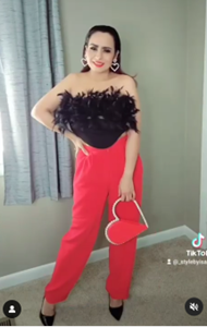 Pair a themed-look challenge with a little bit of feathers and youโve got yourself a killer look that will keep all eyes on you all night long. This fun look exudes confidence and is something you can wear from dinner to the club. I love the heart accessory details โ the silver crystal earrings and the heart bag. Donโt underestimate the power of accessories and textures when putting together your look and donโt be afraid to tap into some trendy materials like feathers either!