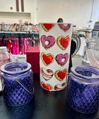 With a few dollars left to spend, they moved on to look through the home goods and décor racks and found some great Valentine’s Day-themed items. A nonstick heart-shaped cake pan would be perfect for baking up a special sweet treat, the heart donut vase is a unique find that can make Valentine’s Day flowers really shine and the full bath and body gift basket that looks brand new and has a price tag of only $7.99.