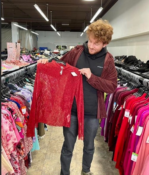 They shopped around the store together and came across some great designer finds. Ben found a red lace top with a ruffle neck. It’s trendy, perfect for layering and from Anthropologie, which made it even more of a steal for just $5.99.