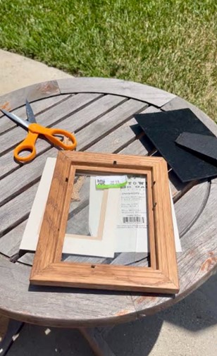 Next step, head home to gather the rest of the materials. I already had scissors and luckily for this DIY, that was really all that I needed! I took the glass out of the picture frame and cut out a piece of burlap to fit inside the frame. Then I put the back of the frame on, and just like that I was looking at my new earring holder!