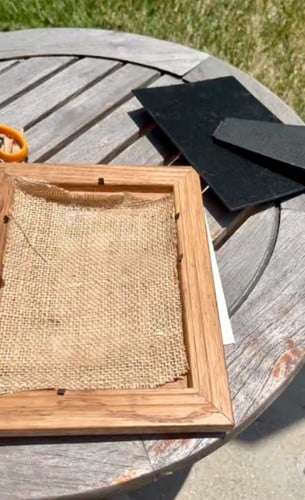 Sometimes there’s nothing more satisfying than finally acting on the thing you have been thinking about for a long time — especially when it works out even better than you’d imagined. For this upcycle project, my first step is heading to Goodwill to see what items I can find to recycle. I was in luck and found the perfect picture frame and a pile of folded burlap. The wheels were turning already, and I could see how this project could come together so easily.