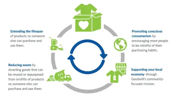 One of the best ways we can all be stewards of our environment is to keep items in circulation for longer. Shopping secondhand does that. Goodwill is one of the biggest promoters of reuse, and we are doing this not just for clothing but also for electronics, household goods and more. In 2024, thanks to our donors and shoppers, we recovered the value of over 4.4 billion pounds of used goods.